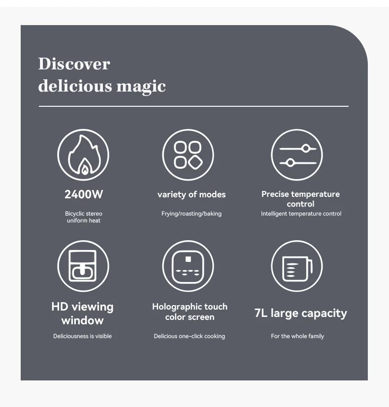 High Quality Large 7 L Stainless Steel Air Fryer with Transparent Viewing Window